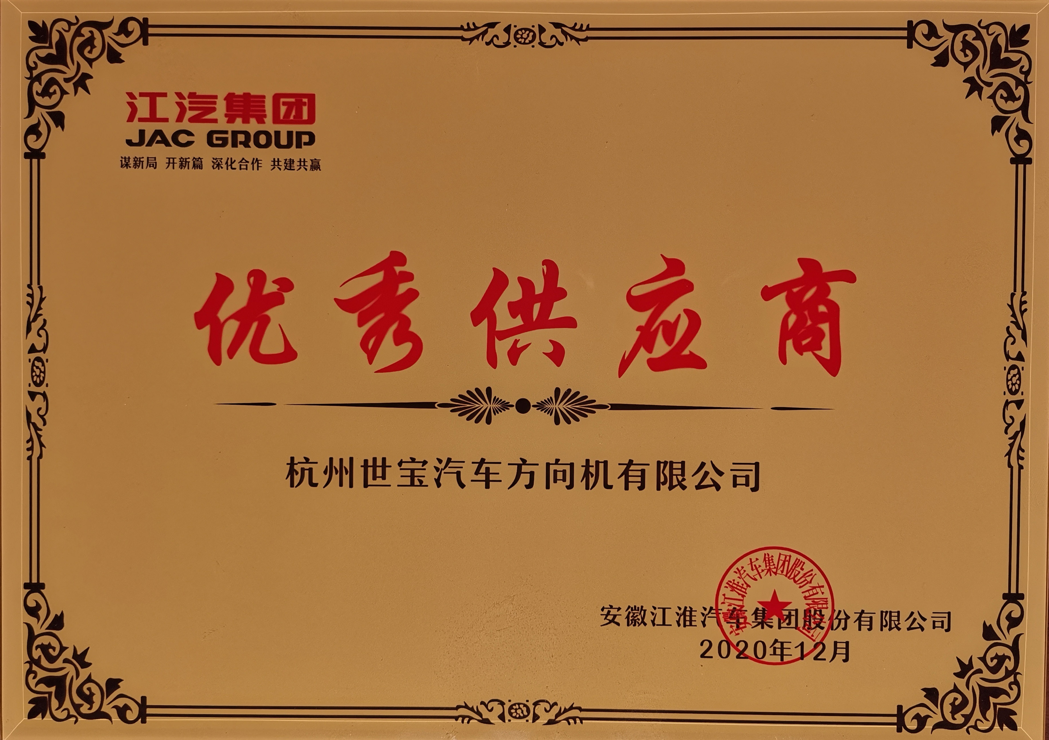 江淮优秀供应商奖