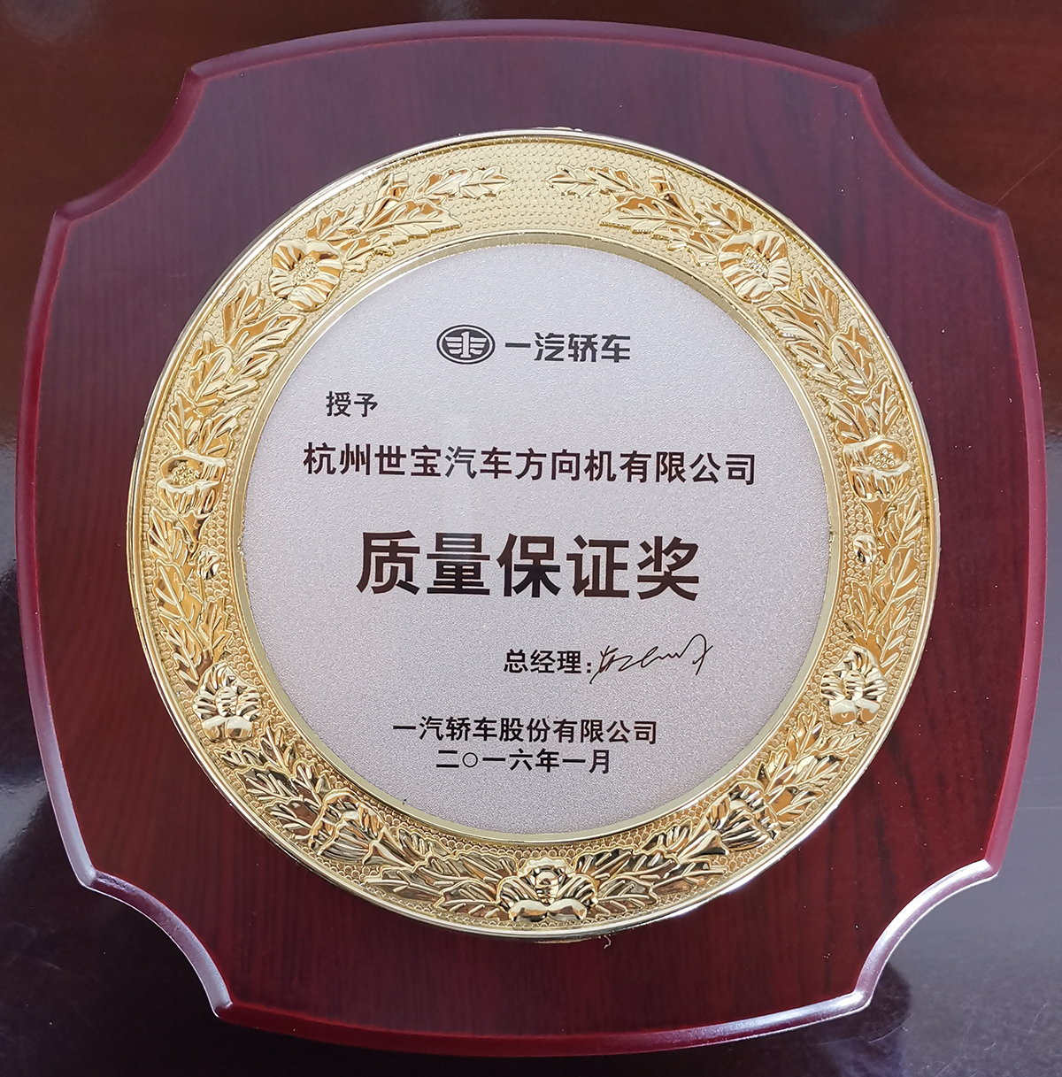 一汽轿车质量保证奖