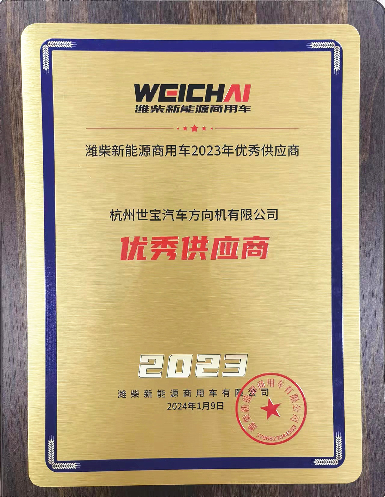 潍柴优秀供应商奖